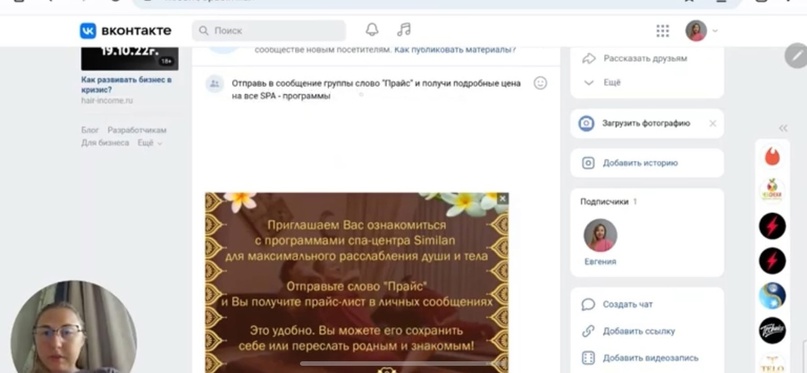 Настройка сообщества Вконтакте для СПА-салона в Вахрушеве
