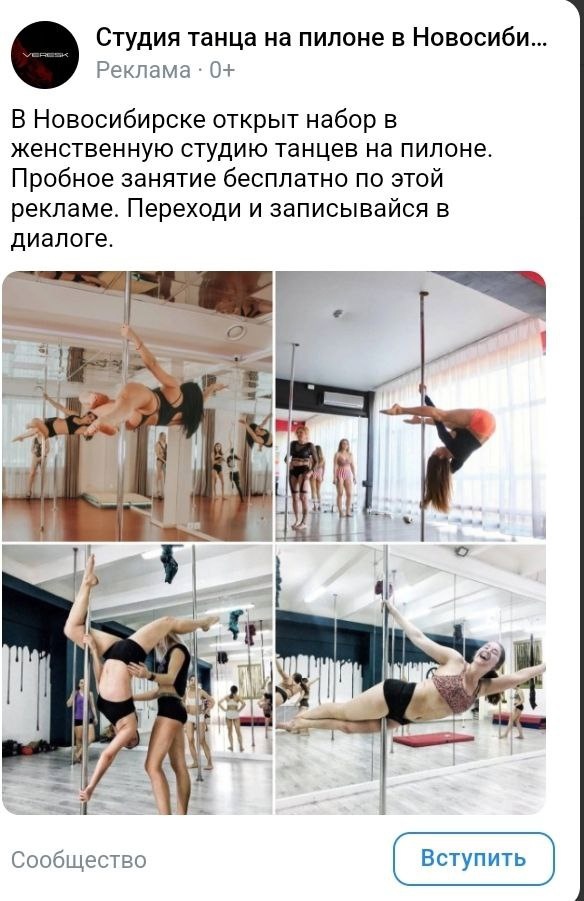Делюсь новым кейсом по продвижению школы танцев на пилоне в Вахрушеве