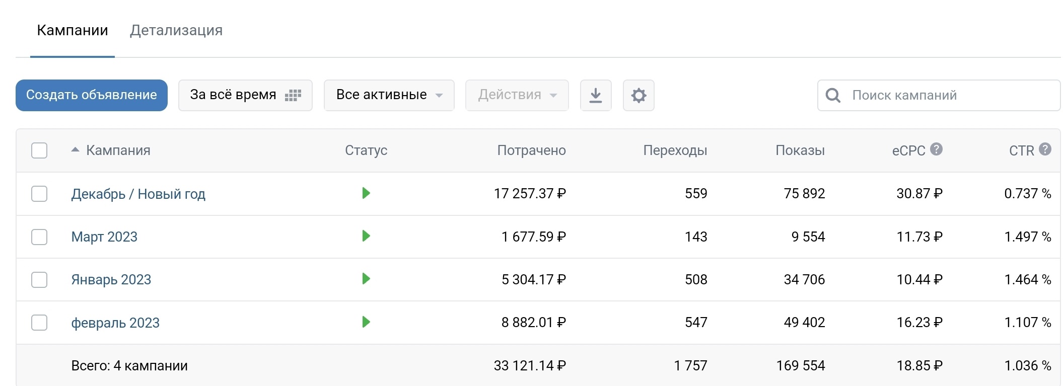 За 3 месяца на таргет было потрачено не так много 33 000.